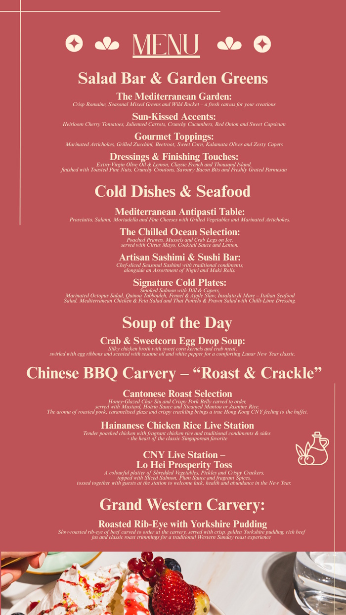 | The main restaurant at the Aberdeen Clubhouse offers a diverse selection of exquisite dishes, ranging from the finest French cuisine to creative and traditional flavors from Asia. Starting August 2025, the restaurant has been transformed into a cozy yet elegant fine dining concept, primarily focusing on Coastal Mediterranean Cuisine. Our menu will take you on a unique destination dining journey, featuring new promotional dishes every three months as we delve into the rich culinary traditions of the Mediterranean. We will begin our voyage by anchoring at Spain's Andalusian coast, with delightful stops in the South of France, Italy, Greece, and Turkey. Additionally, we will incorporate Maghrebi cuisine from the North African Mediterranean coast, rotating these offerings throughout the year. This dining concept will span a full year, during which we will introduce innovative ideas to enhance our members' experiences. Our monthly wine and food promotions from around the world are always popular, providing members with a wonderful opportunity to try something new. |